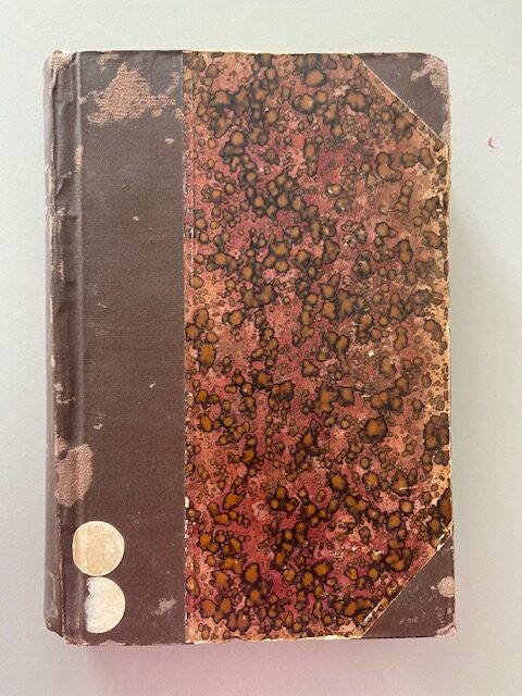 Conditie: redelijk; cover beschadigd, enkele pagina’s los van band; tekst binnenkant cover; tekst en stempel op 3 pagina’s
