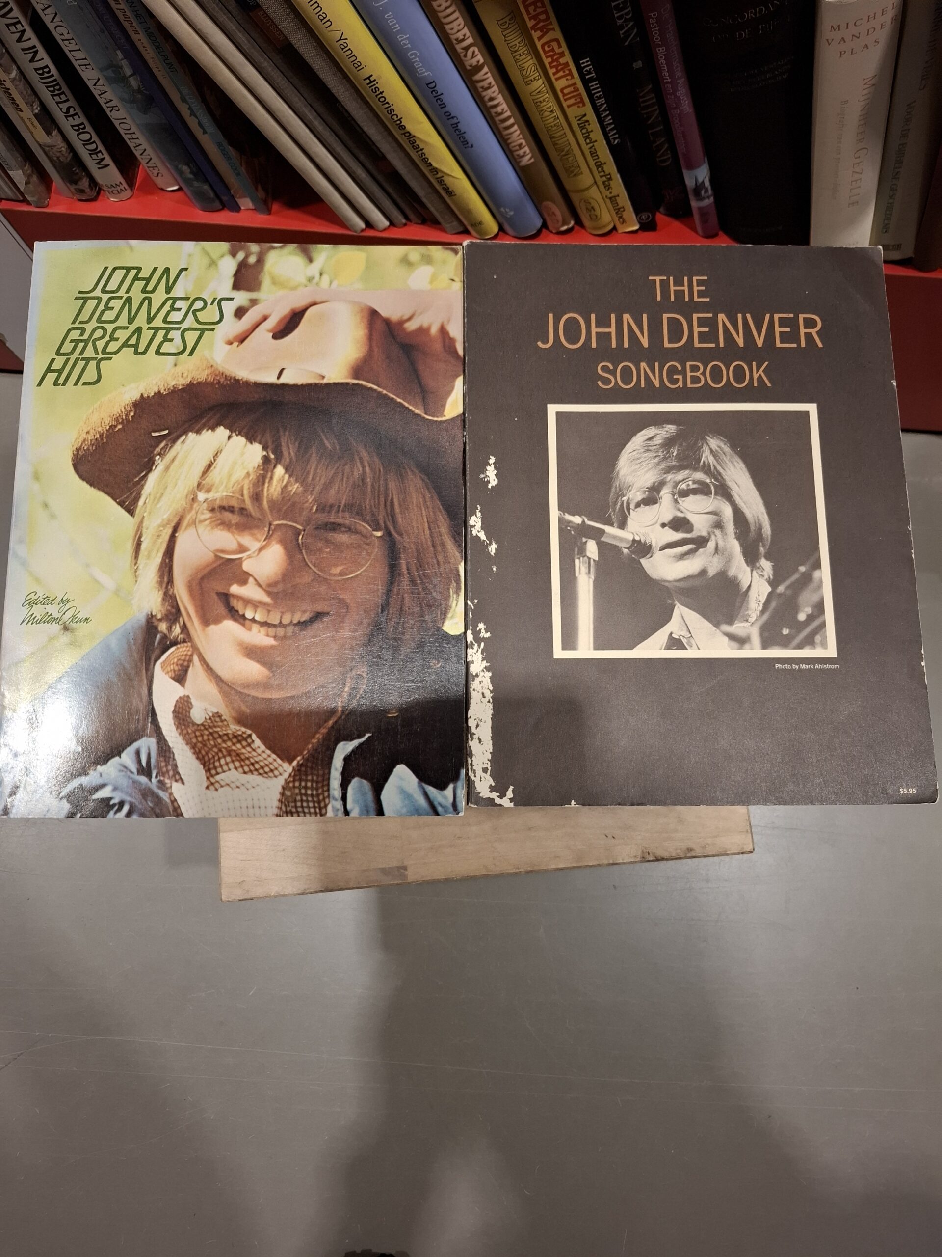 Twee boeken met bladmuziek en teksten van John Denver